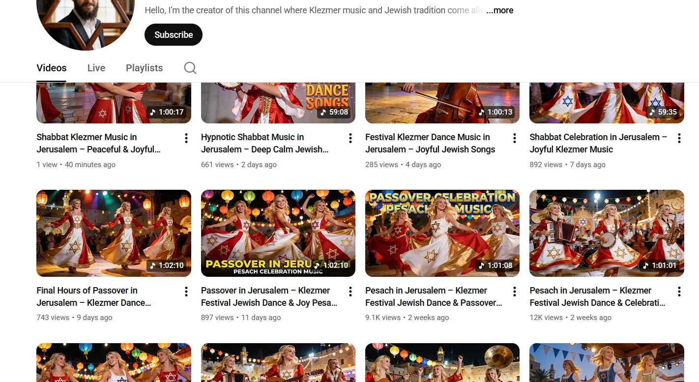 I listened to a few of them, and I'm still not sure if they're Yiddish songs performed by non-Yiddish speakers from somewhere between Israel and Central Asia, with some kind of autotune/effects, or simply AI generated creations of known Yiddish songs.