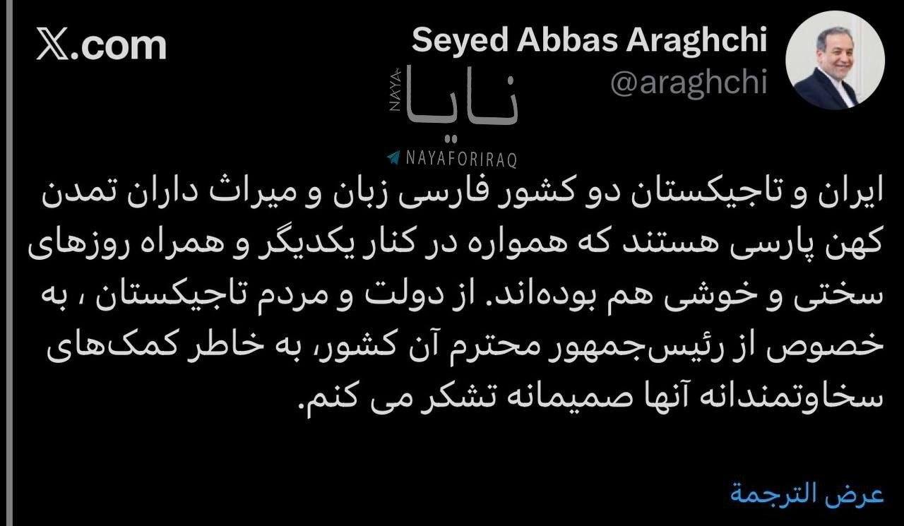Iranian Foreign Minister Abbas Araghchi: #Iran and Tajikistan are two Persian-speaking countries, heirs to the centuries-old Persian civilization