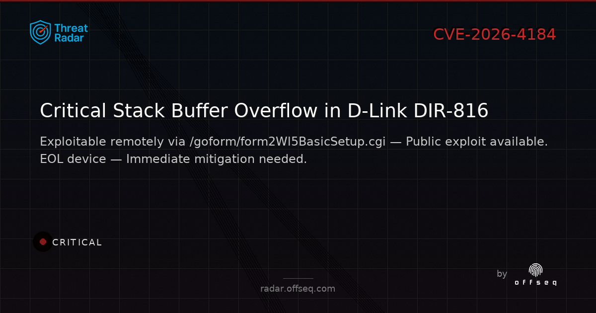 ⚠️ CRITICAL: D-Link DIR-816 (1.10CNB05) stack-based buffer overflow via pskValue in /goform/form2Wl5BasicSetup.cgi.
